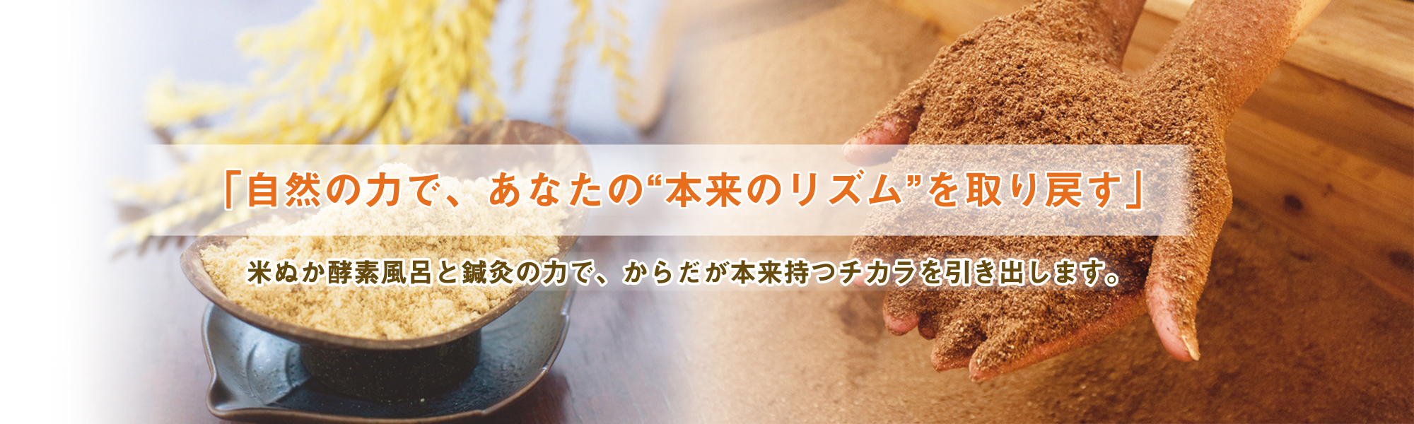米ぬか酵素風呂による温熱療法でしっかりと身体を温め、美肌や健康作り。